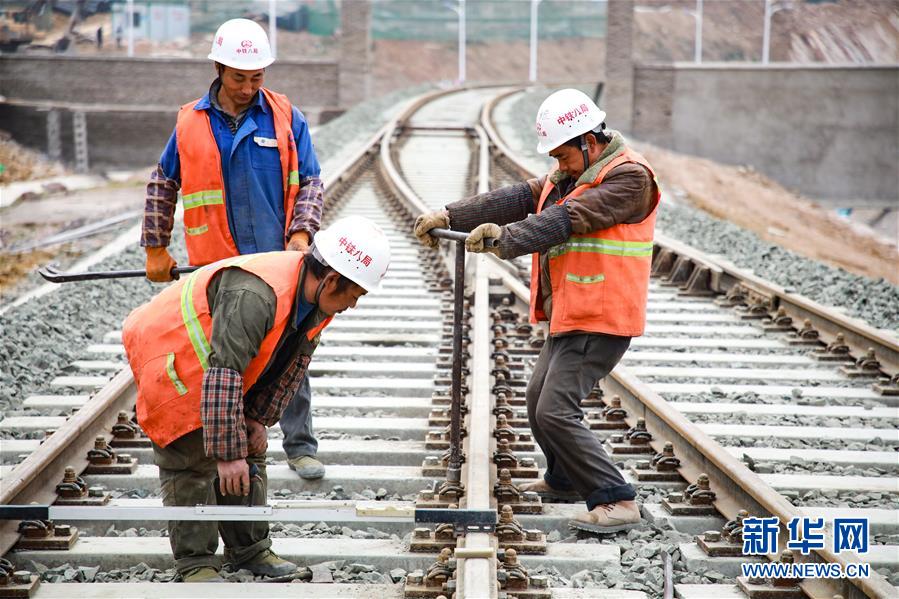 12月17日,中鐵八局建設(shè)者在改貌鐵路口岸施工。 新華社記者 劉續(xù) 攝