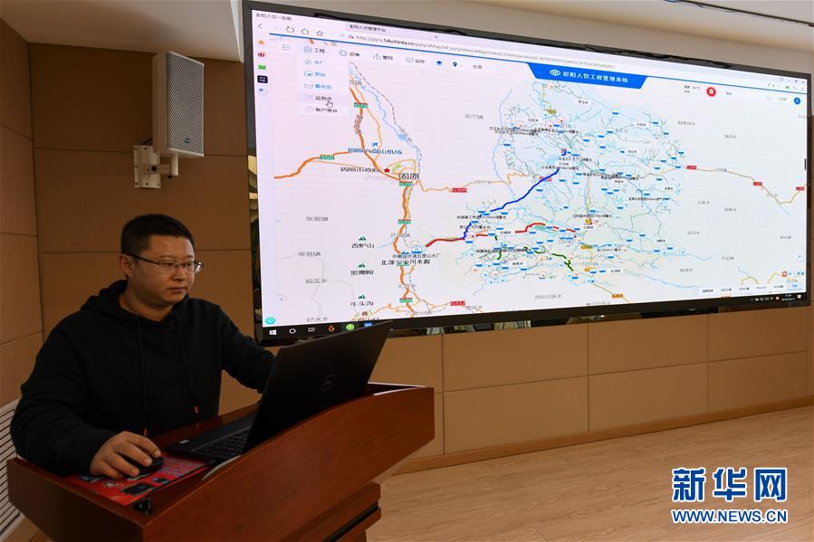 在寧夏固原市彭陽(yáng)縣供水管理總站中控室,工作人員展示彭陽(yáng)人飲工程管理系統(tǒng)(10月11日攝)。 新華社記者 馮開華 攝