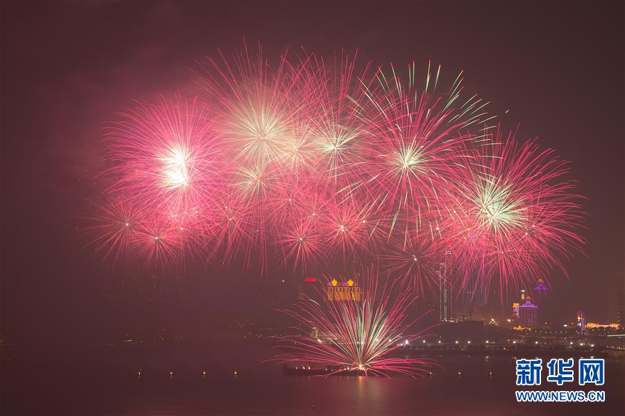 12月22日,煙花在澳門上空綻放。當(dāng)晚,澳門與珠海首次聯(lián)合舉行煙花匯演,慶祝澳門回歸祖國(guó)20周年。新華社記者張金加攝