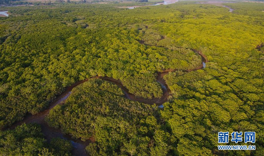 海南新盈紅樹林國家濕地公園的紅樹林(12月10日無人機拍攝)。 新華社記者楊冠宇攝