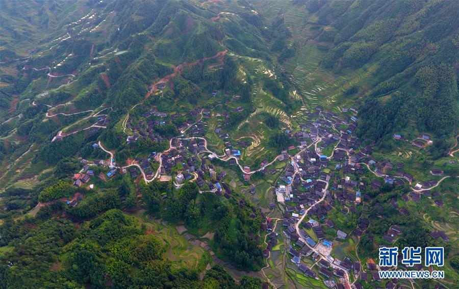 這是融水苗族自治縣桿洞鄉(xiāng)錦洞村的村屯公路(6月18日無人機拍攝)。新華社記者黃孝邦攝