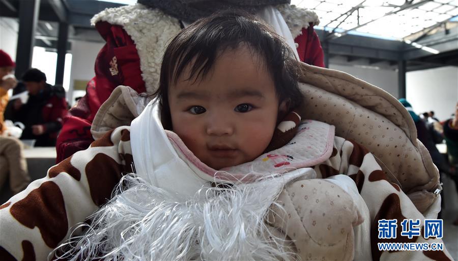 12月23日,在西藏那曲市雙湖縣出生的7個(gè)月大的娟安達(dá)瓦在母親懷里。新華社記者覺果攝