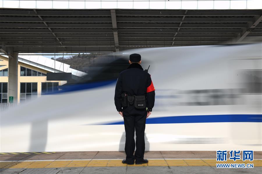 金寨火車站派出所民警張嗣一在站臺(tái)接車(12月19日攝)。安徽合肥鐵路公安處金寨火車站派出所位于大別山腹地。在這里,除了所領(lǐng)導(dǎo)外,青年民警平均年齡不到29歲。他們遠(yuǎn)離家鄉(xiāng),扎根大山深處的小站派出所,戰(zhàn)斗在守護(hù)客運(yùn)平安的第一線。新華社記者張端攝