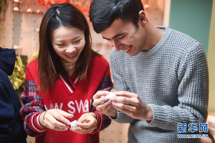 12月27日,中外青年在瓜山新苑社區(qū)活動(dòng)中心參加迎新年活動(dòng),一起包餃子。新華社記者 徐昱 攝