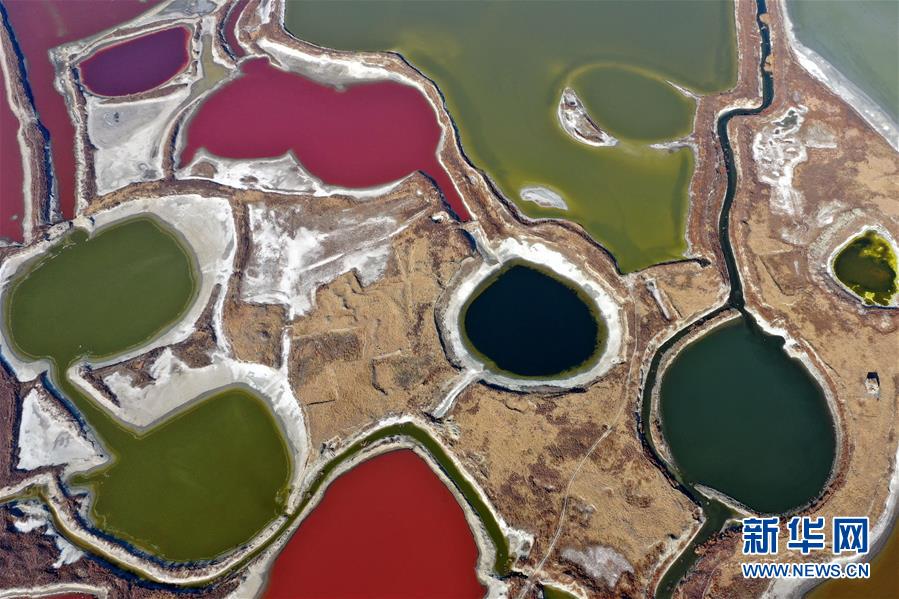 12月27日無人機(jī)拍攝的山西運(yùn)城鹽湖。 冬日時(shí)節(jié),從空中俯瞰位于山西省運(yùn)城市的鹽湖,景色如畫。 新華社記者曹陽攝