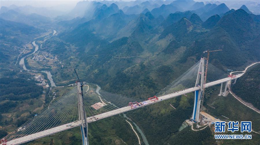 這是9月26日無人機(jī)拍攝的成功合龍的平塘特大橋。新華社記者陶亮攝
