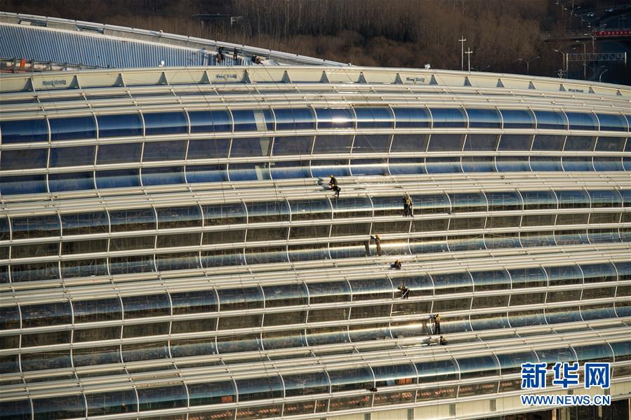 12月31日,施工人員在實現(xiàn)封頂封圍的國家速滑館施工現(xiàn)場工作。新華社記者鞠煥宗攝