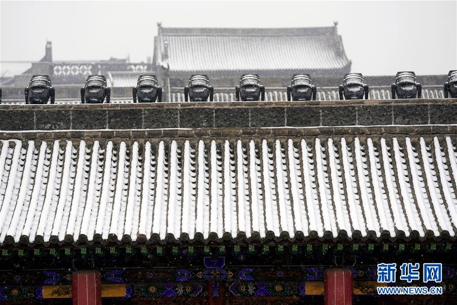 當(dāng)日,山西省平遙縣迎來降雪,雪中的平遙古城銀裝素裹,美景如畫。平遙古城是目前中國保存最完整的古代縣級城池之一,1997年被列入世界文化遺產(chǎn)名錄。