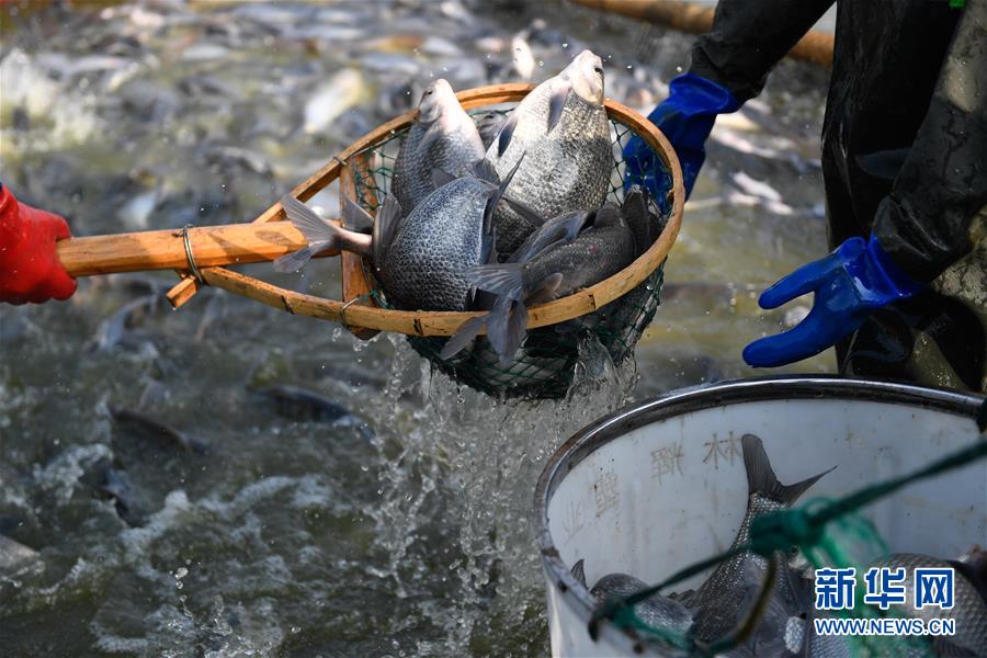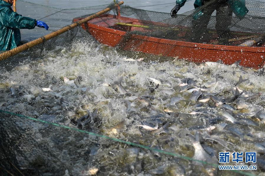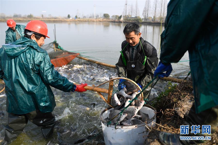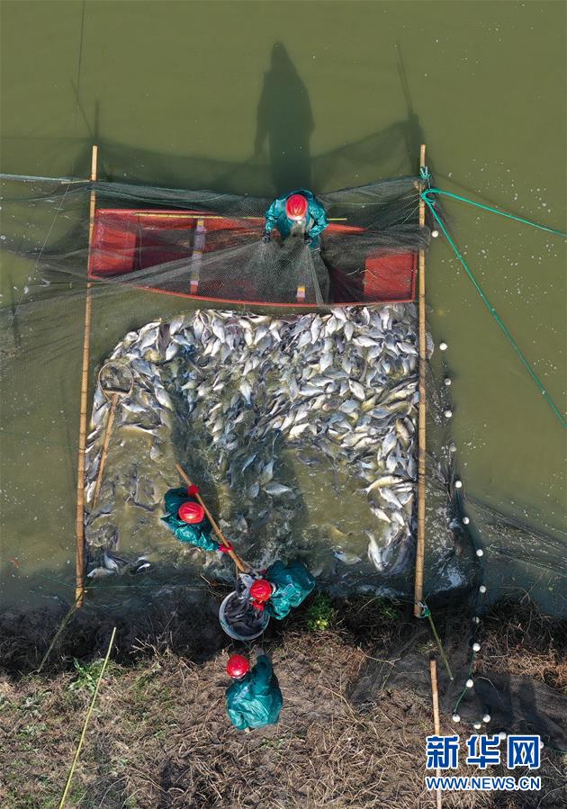 12月28日,漁民們在菱湖鎮(zhèn)盛江家庭農(nóng)場捕魚。新華社記者黃宗治攝