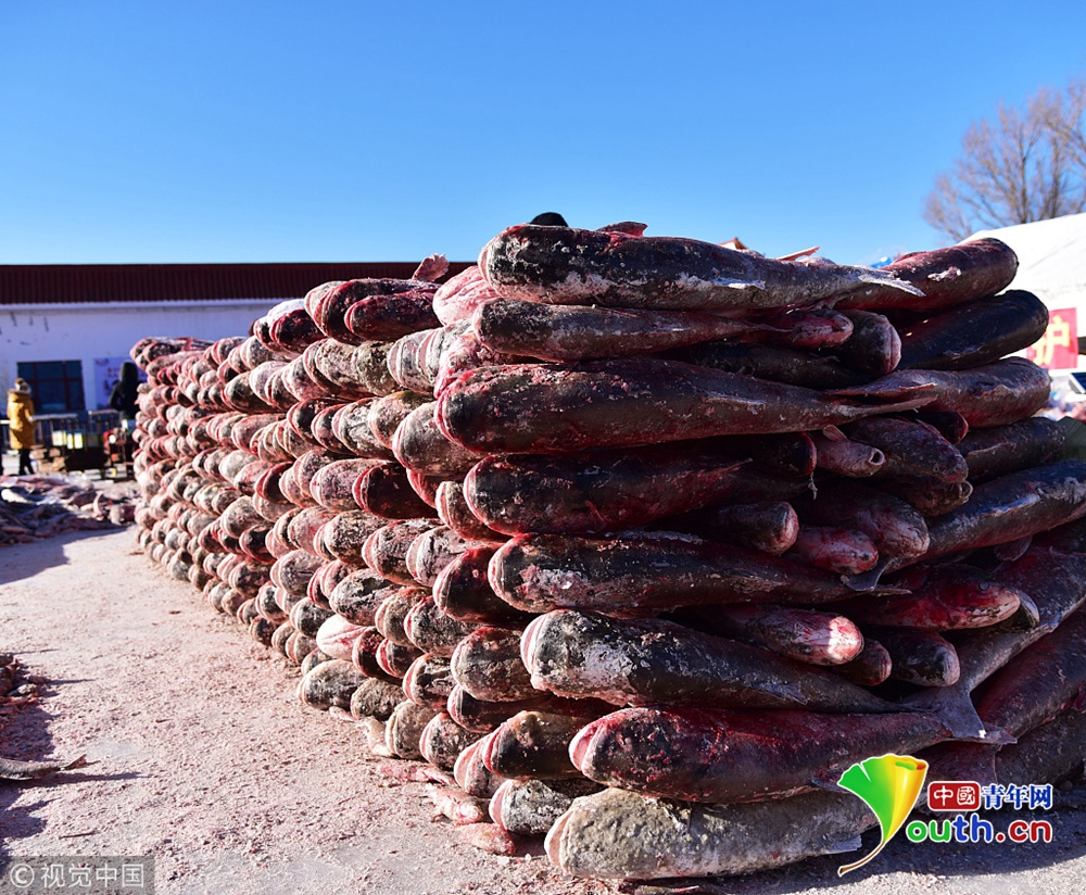 2018年12月26日,吉林松原,查干湖迎來了“紅網(wǎng)”,單網(wǎng)捕撈約30萬斤。