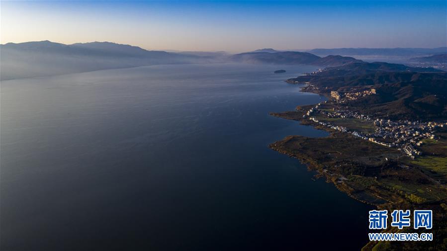 空中俯瞰撫仙湖(無人機照片,1月10日攝)。 新華社記者 江文耀 攝