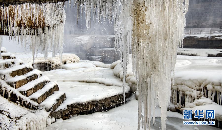 1月12日在陜西黃河壺口瀑布景區(qū)拍攝的“冰峰倒掛”景觀。新華社發(fā)(蘭華攝)