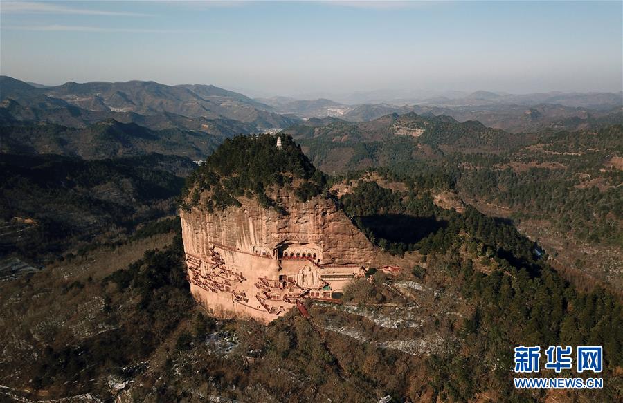 12月26日無人機(jī)拍攝的麥積山石窟。新華社記者馬寧攝