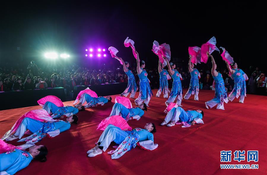 1月14日,杭州市余杭區(qū)中泰街道中橋村的文化公園內(nèi)在進(jìn)行“我們的村晚”舞蹈表演,吸引了大批當(dāng)?shù)匕傩沼^看。臨近春節(jié),浙江省杭州市余杭區(qū)中泰街道各村社的文化禮堂紛紛上演“我們的村晚”。老百姓自編、自導(dǎo)、自演為主的“土味”聯(lián)歡會(huì)因接地氣、親情濃而深受當(dāng)?shù)匕傩盏南矏郏蔀楫?dāng)?shù)剜l(xiāng)村百姓的新年迎春“文化大餐”。近年來(lái),中泰街道以文化振興助推鄉(xiāng)村振興。目前,中泰街道下屬各村陸續(xù)建成文化禮堂7個(gè)、社區(qū)文化家園2個(gè),努力培育和挖掘出一批鄉(xiāng)土文化人才及原創(chuàng)作品,2019年全年開展各類鄉(xiāng)村社區(qū)惠民文體活動(dòng)累計(jì)180余場(chǎng)次。新華社記者徐昱攝