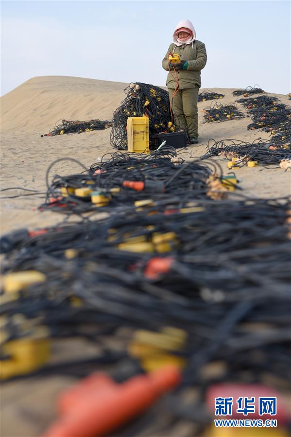 查線工王秋玲在檢測(cè)待用的檢波器(1月14日攝)。新華社記者 丁磊 攝
