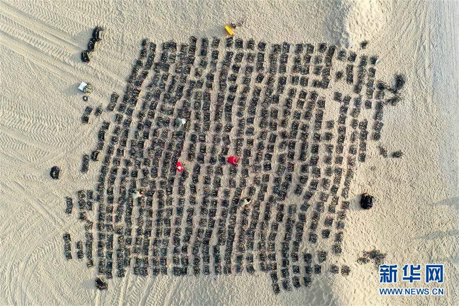 查線女工在檢測(cè)待用的檢波器(無人機(jī)照片,1月14日攝)。 新華社記者 丁磊 攝