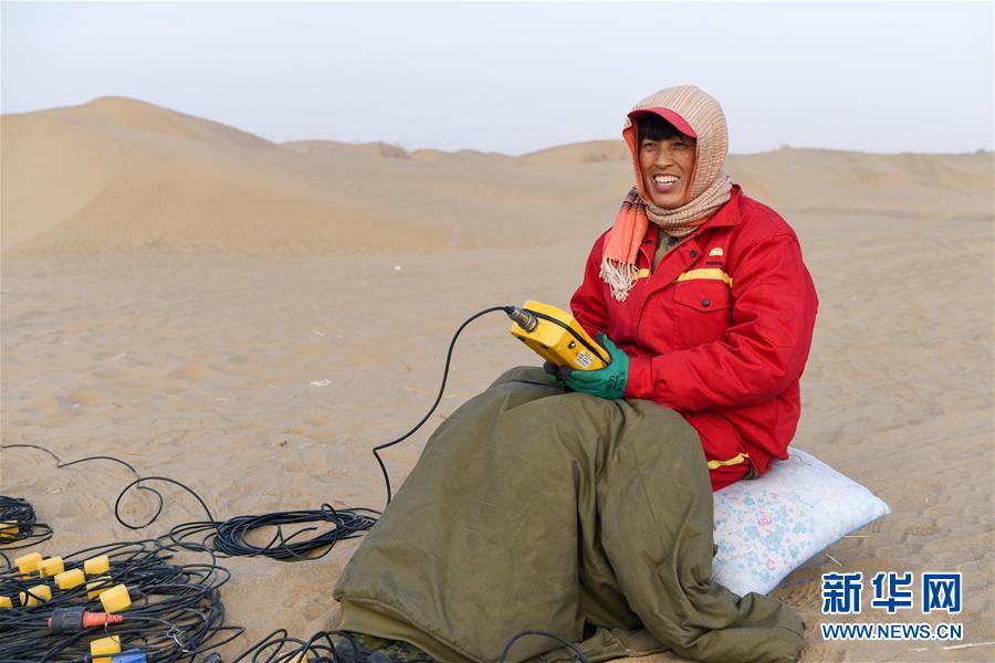 查線工王秋玲在檢測待用的檢波器(1月14日攝)。新華社記者 丁磊 攝