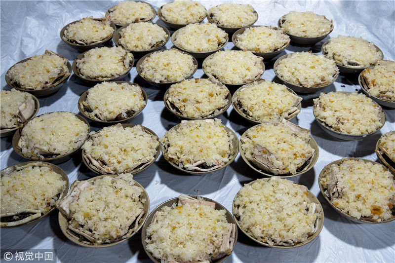 2019年1月26日,重慶中山古鎮(zhèn),880桌“千米長宴”5萬人共品年味。街坊們在頭天就開始準(zhǔn)備各種菜肴與小吃。