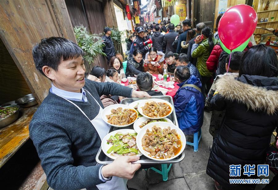 重慶:吃“千米長(zhǎng)宴” 品古鎮(zhèn)年味