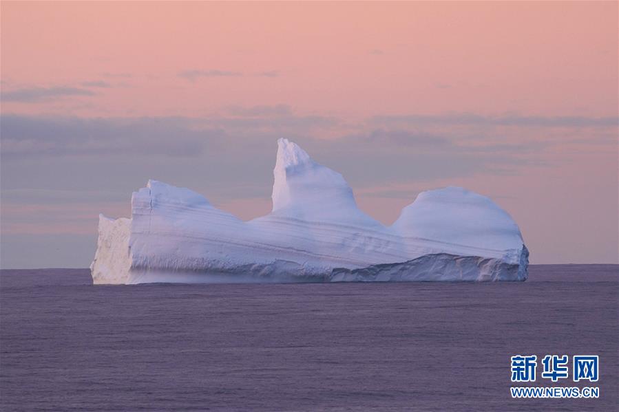 南大洋上的午夜冰山(2019年12月28日攝)。新華社記者劉詩平攝