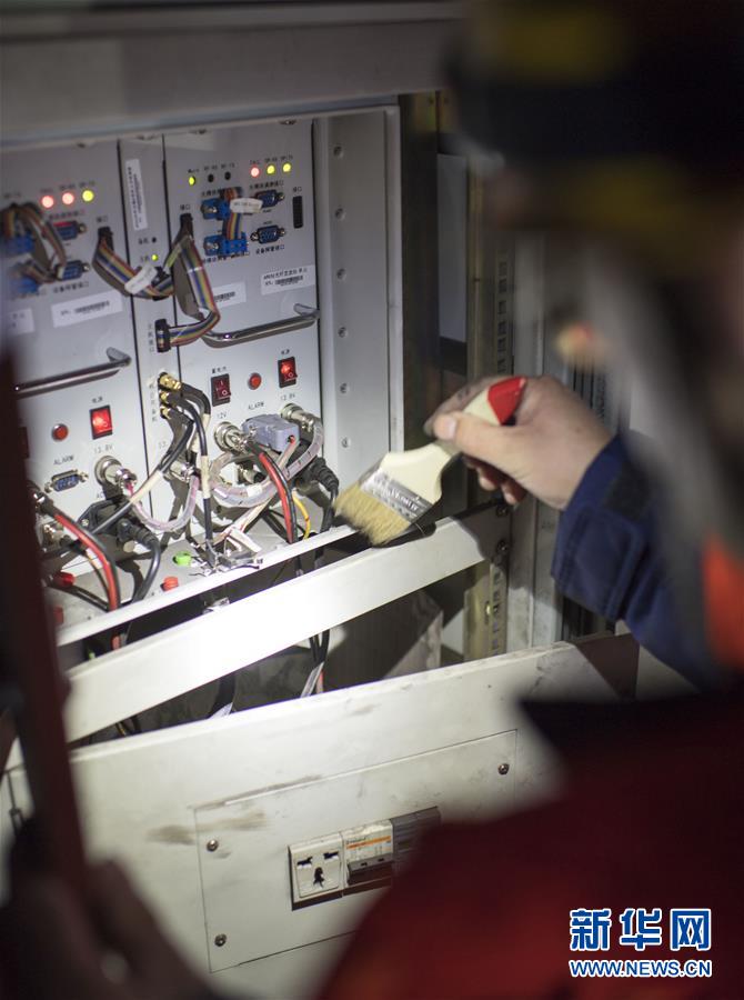 通化通信車(chē)間無(wú)線工區(qū)鐵路通信工人檢修維護(hù)隧道內(nèi)用于通信傳輸?shù)墓饫w直放設(shè)備(1月10日攝)。2020年春運(yùn)1月10日拉開(kāi)帷幕。新華社記者許暢攝