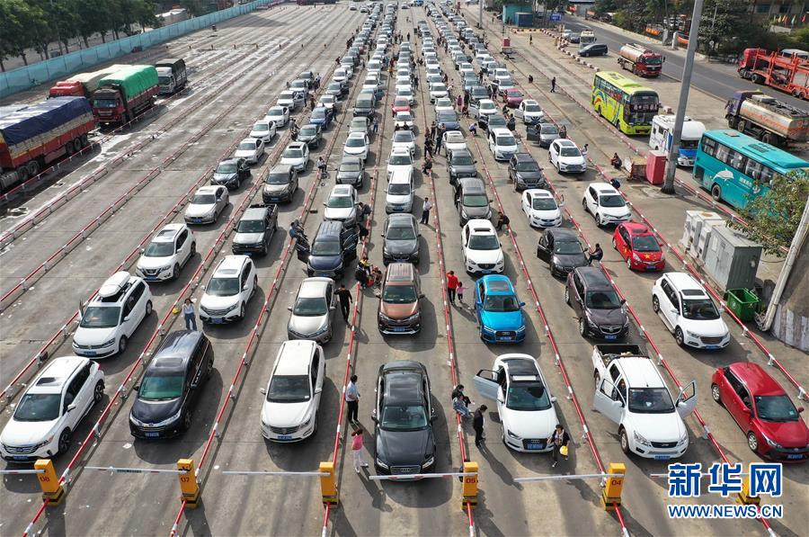 1月19日,車輛在??谛阌⒏圯喍纱a頭等待登船(無人機照片)。 當(dāng)日是春運第10天,瓊州海峽進入春運進出港高峰。據(jù)海南港航控股有限公司數(shù)據(jù),截至18日,海口市兩港口春運累計進出港旅客54.89萬人次,進出港車輛13.32萬輛次。18日單日進出港旅客9.75萬人次,同比增長43.9%,進出港車輛2.3萬輛車次,同比增長45.5%。 新華社記者 郭程 攝