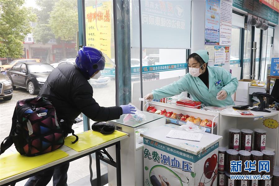 2月22日,王春波將藥品遞給前來買藥的外賣騎手。王春波是武昌天濟(jì)大藥房錦繡江南店的一名店員,在武漢下達(dá)“所有小區(qū)全面實(shí)施封閉管理”的禁令之后,很多居民買藥成了麻煩事,尤其是獨(dú)居的老年人。她知道后,主動聯(lián)系物業(yè)告知大家,如果有需要,她可以上門送藥?,F(xiàn)在,她和同事每天要派送100多單藥品,大部分都是“三高人群”服用的藥。很多顧客很感激王春波,“幸虧你們一直開業(yè),東西也齊全,一分錢都沒漲!”王春波說:“關(guān)鍵時期,大家都是在相互幫忙,這就是很平常、很普通的一件事?!毙氯A社記者熊琦攝