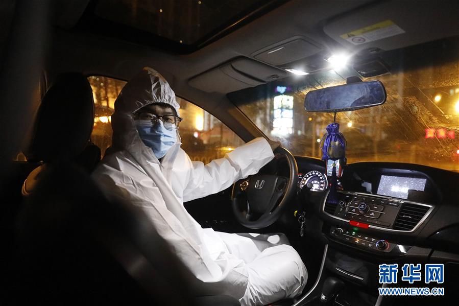 2月21日,王永朋在路邊等待,準(zhǔn)備接單。這個春節(jié)王永朋沒回老家甘肅安陽,他報名擔(dān)任高德醫(yī)護(hù)專車志愿者,開著年前剛買的新車,免費(fèi)接送醫(yī)護(hù)人員上下班。因?yàn)樽≡谖錆h新洲區(qū),距離江漢、武昌等老城區(qū)有相當(dāng)一段車程,他每天早上6點(diǎn)就起床出車,晚上十一二點(diǎn)才能回家休息,一天接送幾十位醫(yī)護(hù)人員上下班。每次到達(dá)目的地,醫(yī)生和護(hù)士下車后做的第一件事,總是向他致謝,還有不少人硬要塞錢給他,穿著防護(hù)衣、戴著口罩和護(hù)目鏡的王永朋,每次都微笑著退回了。新華社記者熊琦攝