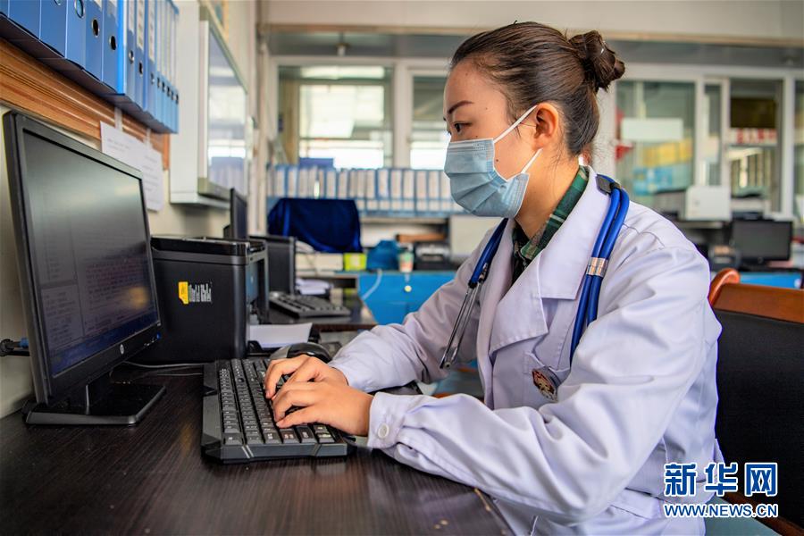 在西藏自治區(qū)人民醫(yī)院實(shí)習(xí)的西藏大學(xué)醫(yī)學(xué)院2017級(jí)內(nèi)科學(xué)專業(yè)研究生張澤鑫在工作中(2月23日攝)。新華社記者孫非攝