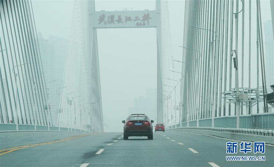 2月26日,劉女士開車送餐經(jīng)過武漢長江二橋。新華社記者程敏攝