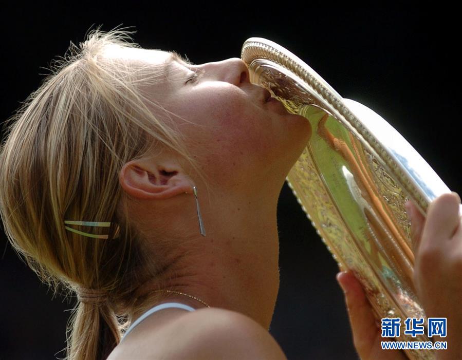 圖為2004年7月3日,莎拉波娃在溫布爾登網(wǎng)球錦標(biāo)賽女單決賽中戰(zhàn)勝美國(guó)選手小威廉姆斯,奪得冠軍。
