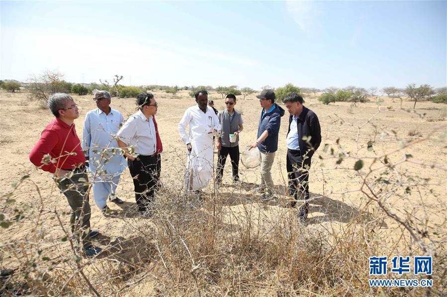 2月26日,在巴基斯坦信德省,中國蝗災(zāi)防治工作組專家查看蝗災(zāi)狀況。新華社記者劉天攝