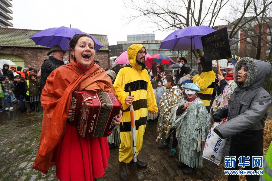 2月27日,人們在比利時(shí)布魯塞爾參加狂歡節(jié)活動(dòng)。 新華社記者鄭煥松攝