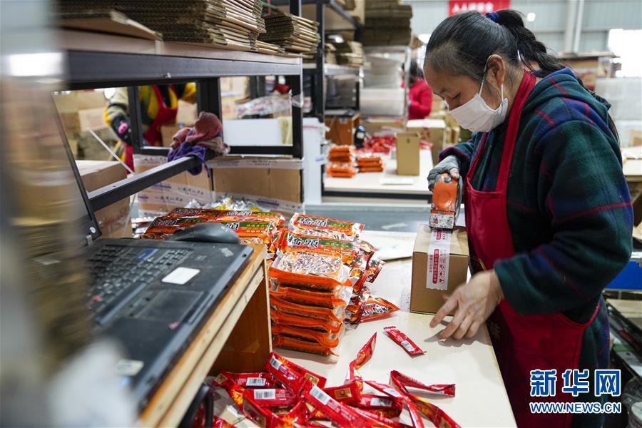 2月27日,在秀山(武陵)現(xiàn)代物流園區(qū)的電商云倉內(nèi),工人在打包包裹。地處重慶市秀山縣的秀山(武陵)現(xiàn)代物流園區(qū),是渝湘黔三省市交界地區(qū)的區(qū)域性物流中心。重慶市秀山縣在做好新冠肺炎疫情防控工作前提下,當(dāng)?shù)卣e極幫助電商、物流企業(yè)解決招工、運(yùn)輸、銷售等方面的實(shí)際問題,推動(dòng)秀山(武陵)現(xiàn)代物流園區(qū)快速進(jìn)入全面復(fù)工復(fù)產(chǎn)階段。據(jù)介紹,隨著物流園區(qū)的電商和物流企業(yè)全面復(fù)工復(fù)產(chǎn),既滿足當(dāng)?shù)厝罕姷奈镔Y供應(yīng),又幫助當(dāng)?shù)剞r(nóng)產(chǎn)品通過電商平臺實(shí)現(xiàn)快速銷售。新華社記者劉潺攝