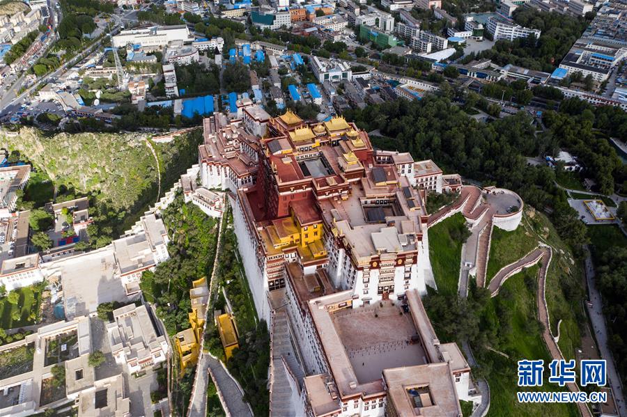 8月10日無(wú)人機(jī)拍攝的布達(dá)拉宮。新華社記者李鑫攝