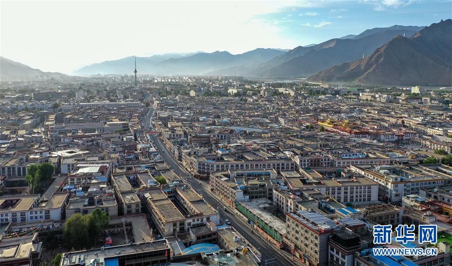 鳥(niǎo)瞰拉薩古城(8月10日無(wú)人機(jī)拍攝)。新華社記者李鑫攝