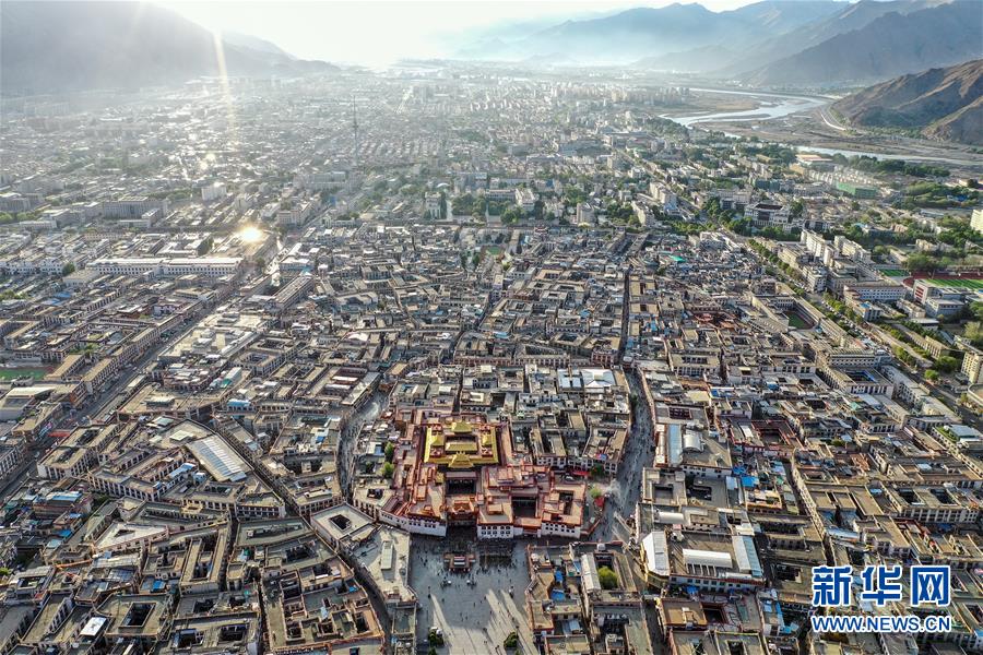 8月10日無(wú)人機(jī)拍攝的大昭寺。新華社記者普布扎西攝