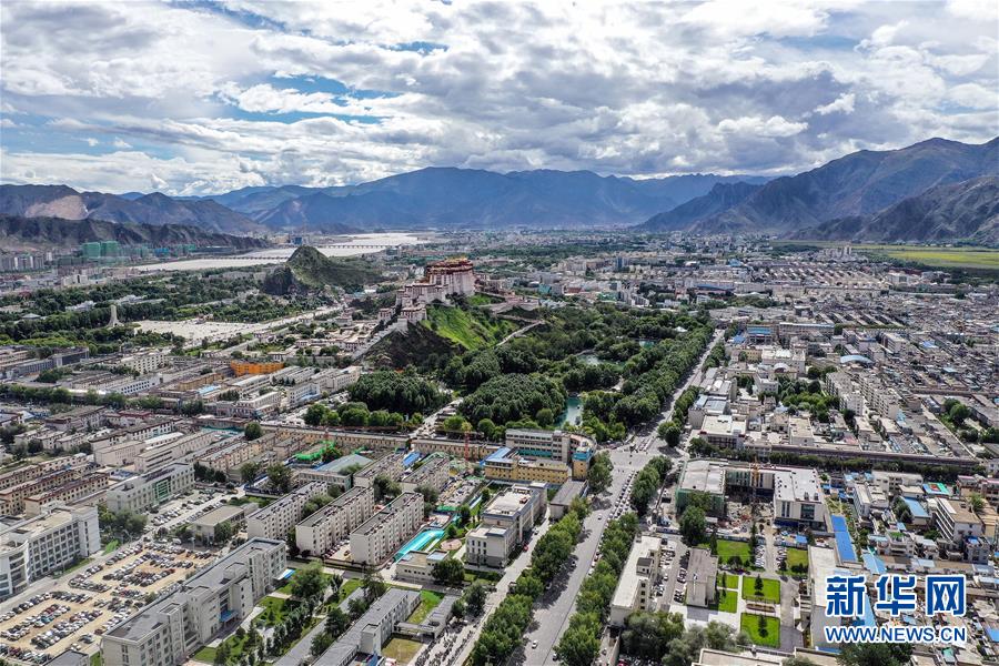 鳥瞰拉薩古城(8月10日無人機(jī)拍攝)。新華社記者晉美多吉攝