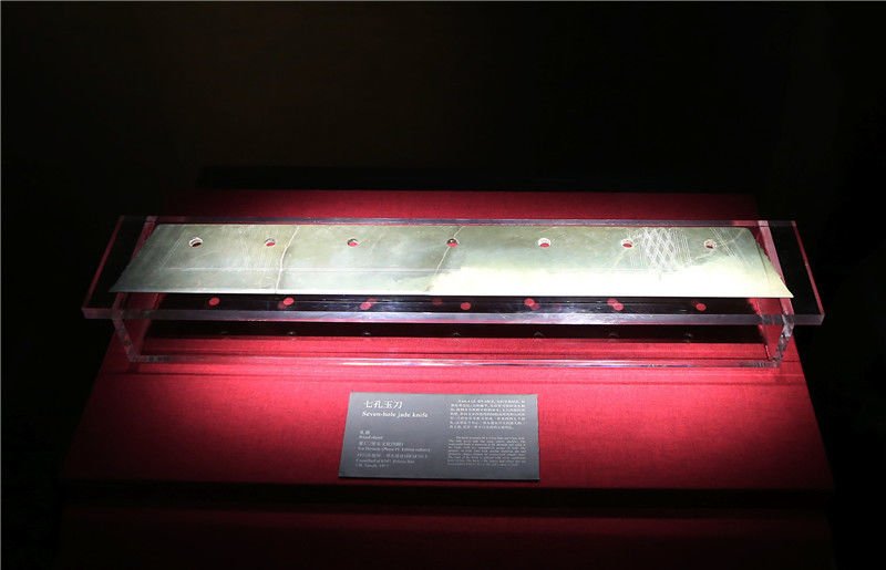 2019年10月19日,河南洛陽,二里頭夏都遺址博物館?!捌呖子竦丁笔嵌镱^夏都遺址出土的最大的玉器。