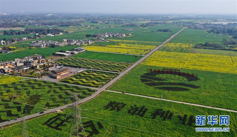 2月25日在四川省崇州市農(nóng)業(yè)產(chǎn)業(yè)功能區(qū)拍攝的油菜花田(無人機照片)。初春時節(jié),正值農(nóng)時。成都平原西部的大邑、崇州等縣市油菜長勢良好,一片生機盎然的景象。新華社記者王曦攝