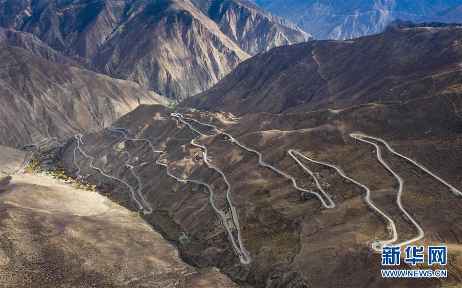 這是“怒江72拐”,該處位于西藏自治區(qū)昌都市八宿縣境內(nèi),是川藏線上一段艱險與美景并存的山路(10月23日無人機拍攝)。全長2000多公里的川藏公路,從成都開始,一路向西到終點拉薩,在橫斷山脈、喜馬拉雅山脈和念青唐古拉山脈間蜿蜒盤旋,因海拔落差大,彎道眾多,形成天路奇觀。川藏公路1954年12月25日通車,65年來,國家對川藏公路進行了大規(guī)模改造升級,建設(shè)了眾多橋梁和隧道,行車條件得到明顯改善。新華社記者江宏景攝