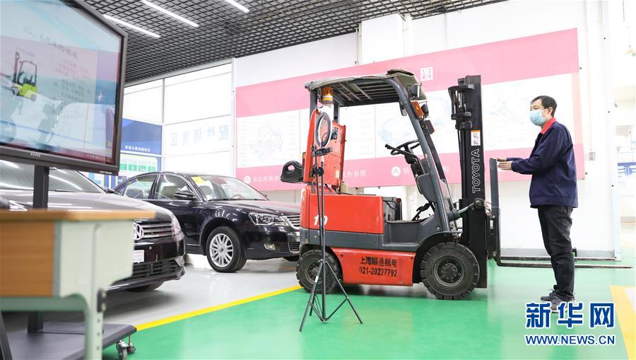3月4日,職教城內(nèi)的鞍山市交通運輸學(xué)校的楊永祥老師為學(xué)生進行物流叉車實訓(xùn)網(wǎng)絡(luò)授課。遼寧省鞍山市職教城內(nèi)的各類職業(yè)教育學(xué)校從3月2日恢復(fù)網(wǎng)絡(luò)授課以來,教師們設(shè)置了豐富多彩的課程,提高1萬余名學(xué)生線上學(xué)習(xí)的積極性。新華社記者 姚劍鋒 攝