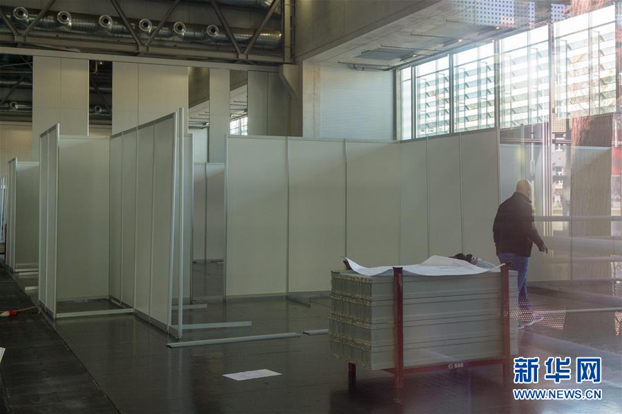 3月14日,在即將改造成為方艙醫(yī)院的維也納展覽館內(nèi),工作人員正在加緊施工。近日,由于奧地利新型冠狀病毒感染人數(shù)不斷增加,奧地利首都維也納正在將該市的一座大型展覽館——維也納展覽館改造成為一座臨時性的方艙醫(yī)院。據(jù)當?shù)孛襟w介紹,該方艙醫(yī)院將在下周提供880張床位,用于收治輕度病癥患者。新華社記者郭晨攝