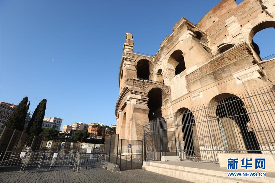3月16日,在意大利首都羅馬,斗獸場(chǎng)因疫情關(guān)閉。新華社記者程婷婷攝