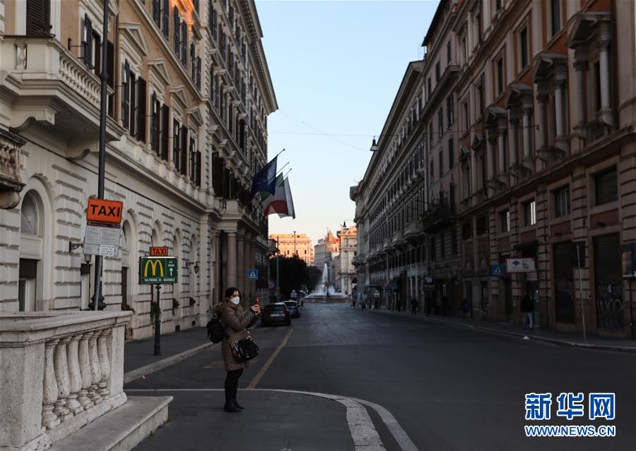 3月15日,在意大利首都羅馬,街頭空無(wú)一人。新華社記者程婷婷攝