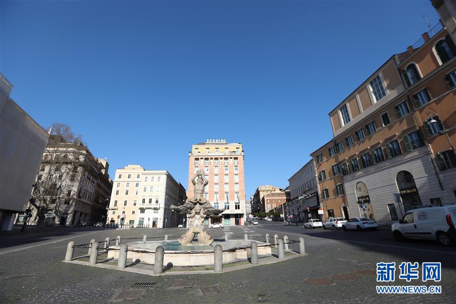 3月16日,在意大利首都羅馬,巴貝里尼廣場(chǎng)空曠無(wú)游人。新華社記者程婷婷攝