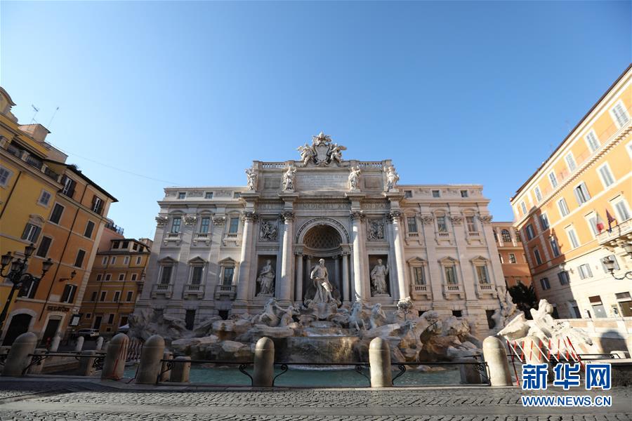 3月16日,在意大利首都羅馬,因疫情關(guān)閉的許愿池前無(wú)游人。新華社記者程婷婷攝
