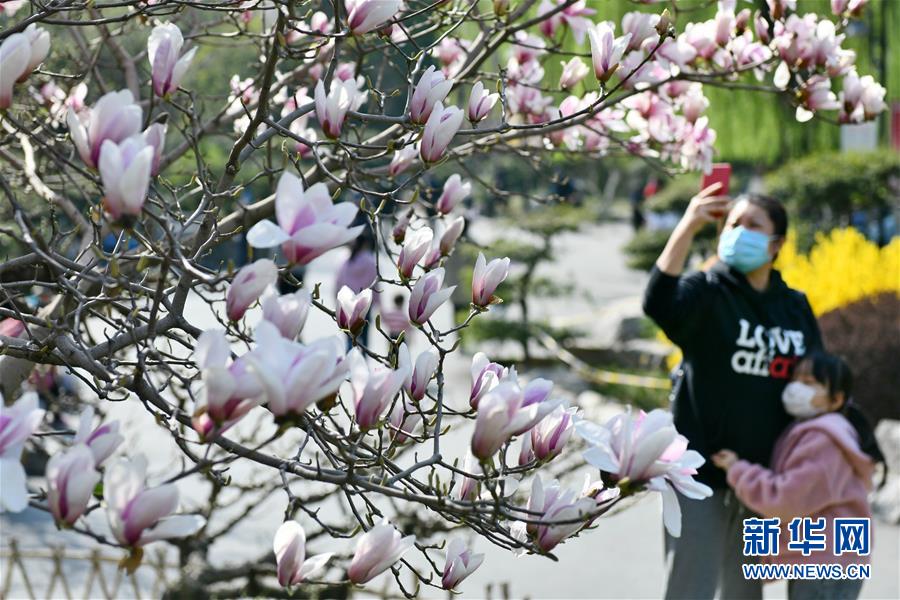 3月18日,游人在濟(jì)南百花公園拍照。新華社記者 朱崢 攝
