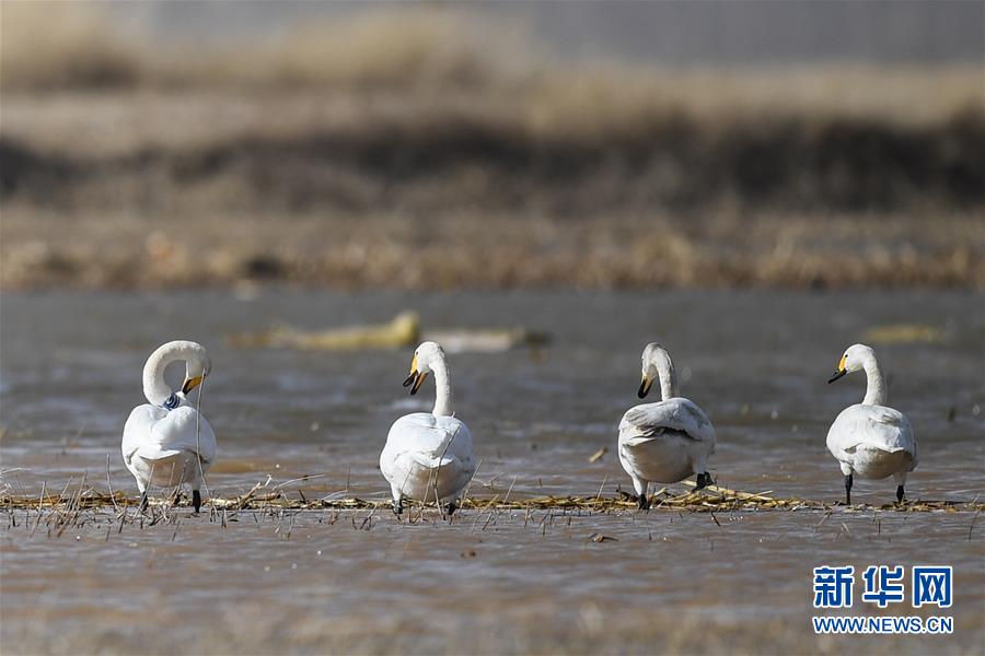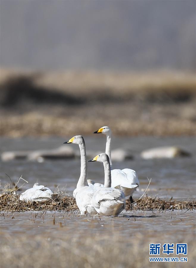 這是3月18日在準格爾旗大路鎮(zhèn)的黃河淺灘上拍攝的候鳥。 新華社記者 于嘉 攝