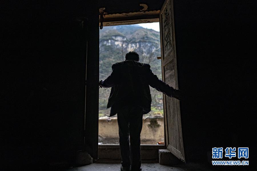 云南省永善縣大興鎮(zhèn)駱丘村村民晏付高關(guān)上老屋的大門準備離開(3月14日攝)。 新華社記者 江文耀 攝
